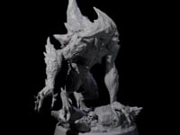 This aberration miniature captures the essence of a predatory horror, sculpted with imposing anatomical detail. The muscular frame features distinctive digitigrade legs and clawed hands, while the hunched back bristles with jagged dorsal spikes. The creature's snarling face, complete with prominent teeth, conveys aggressive intent. Set upon a detailed round base adorned with rocky terrain and scattered remains, this figure brings an element of otherworldly menace to any tabletop encounter.