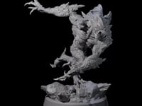 This aberration miniature captures the horror's bestial nature with pronounced anatomical detail, from its elongated claws to its snarling, beast-like face with its distinctive snout. The creature's body features intricate swirling, vine-like textures that emphasize its unnatural origins. Positioned in a dynamic leaping pose with one arm raised high, the miniature rests upon a detailed round base adorned with rocky terrain and scattered skulls, perfect for adding narrative depth to any encounter.