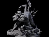 This multi-headed Nothic figure captures the essence of these dreaded creatures, featuring elongated limbs ending in vicious claws and writhing tentacles emerging from its back. The miniature's aggressive, hunched posture and multiple snarling heads create an imposing presence, while its sinewy, textured body emphasizes its aberrant nature. Set upon a detailed base with twisted, root-like formations, this figure offers painters and Game Masters a compelling piece for encounters that delve into the darker corners of fantasy realms.