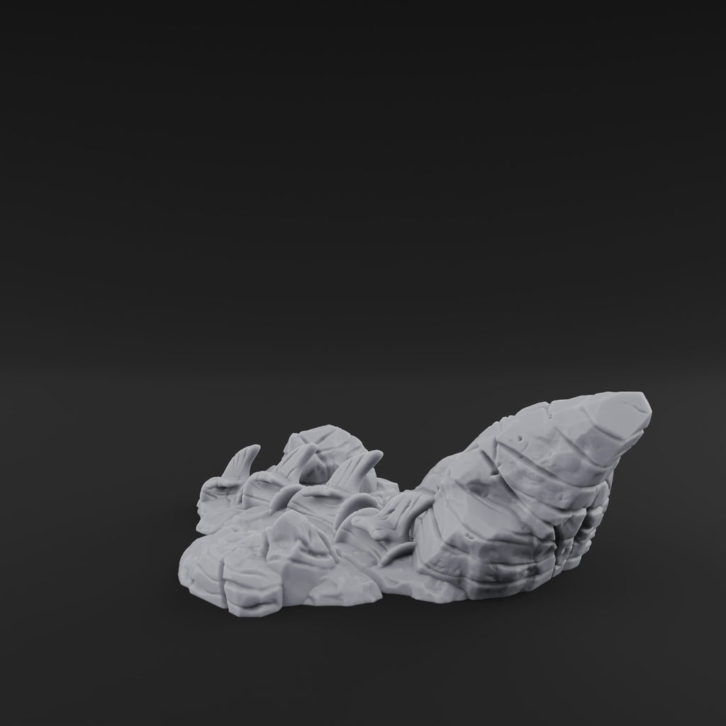 On the battlefield, this outcrop earns its place fast. It provides partial cover for infantry-scale models, creates natural chokepoints along open ground, and serves as a perfect objective marker for resource-control scenarios or last-stand encounters. Place it alongside other scatter pieces to build out a convincing wasteland, blasted heath, or rocky mountain pass. Whether your party is ambushed by raiders in a post-apocalyptic hellscape or your skirmish force is scrambling for cover across no-man's-land, this piece delivers tactical depth and visual storytelling in one compact package. Available in lightweight, durable PLA — built to survive countless campaigns.