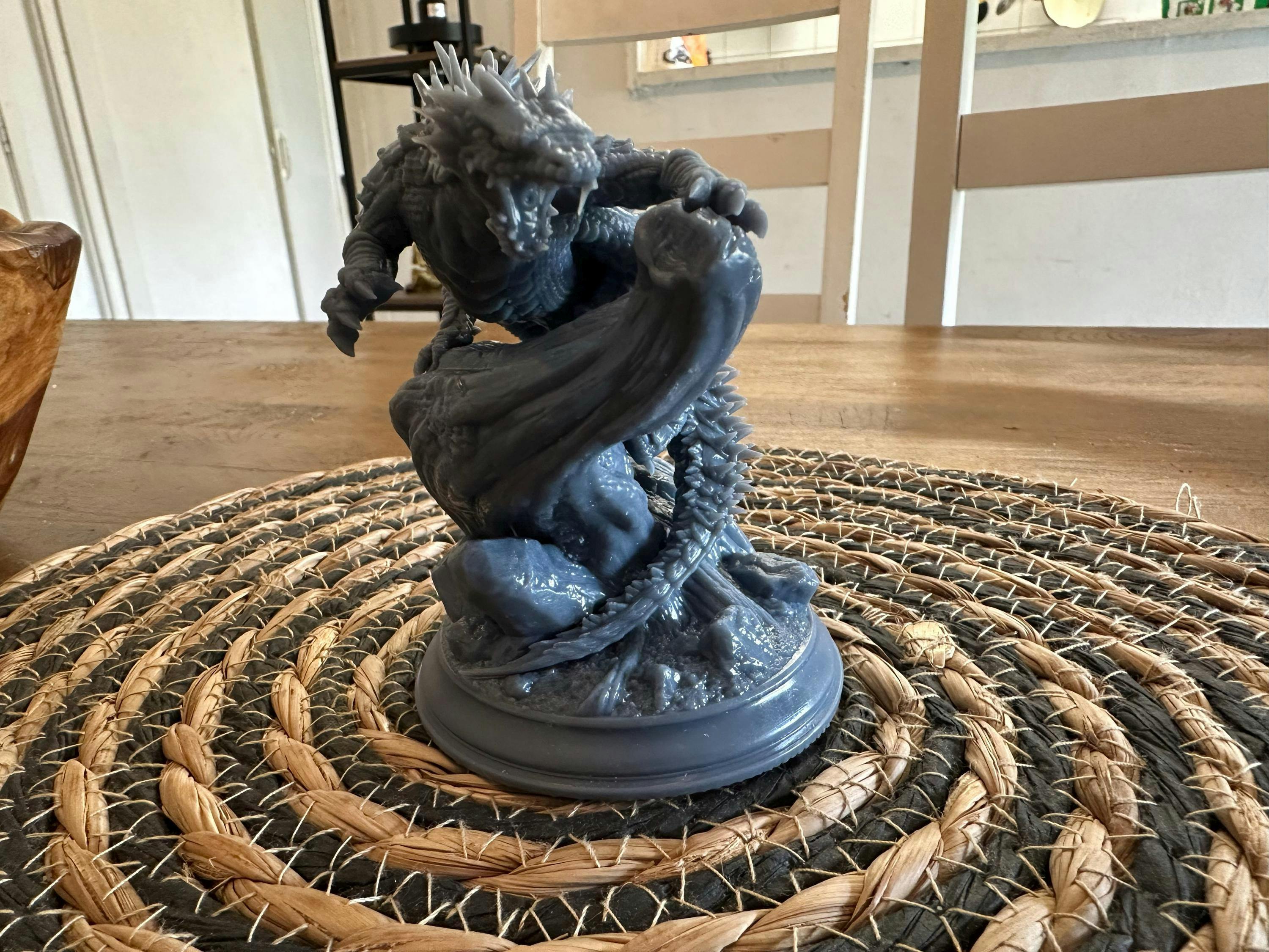 Hobbyists and painters will revel in the details, from the scales and spines to the rugged rock base that frames this creature in its natural element. Whether highlighting its sinister eyes or emphasizing the textures along its body, this miniature offers ample opportunity to bring a petrifying creature of legend to life on the tabletop.