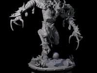 This imposing miniature captures a towering demon in mid-stride, with elongated arms raised and deadly claws extended for the strike. Multiple horns crown its snarling visage, while its skeletal, muscular form is protected by jagged armor plates integrated with organic growths. The detailed base features broken structures and scattered debris, creating a dramatic scene that enhances the demon's menacing presence. Perfect for RPG encounters, boss battles, or as a striking display piece.
