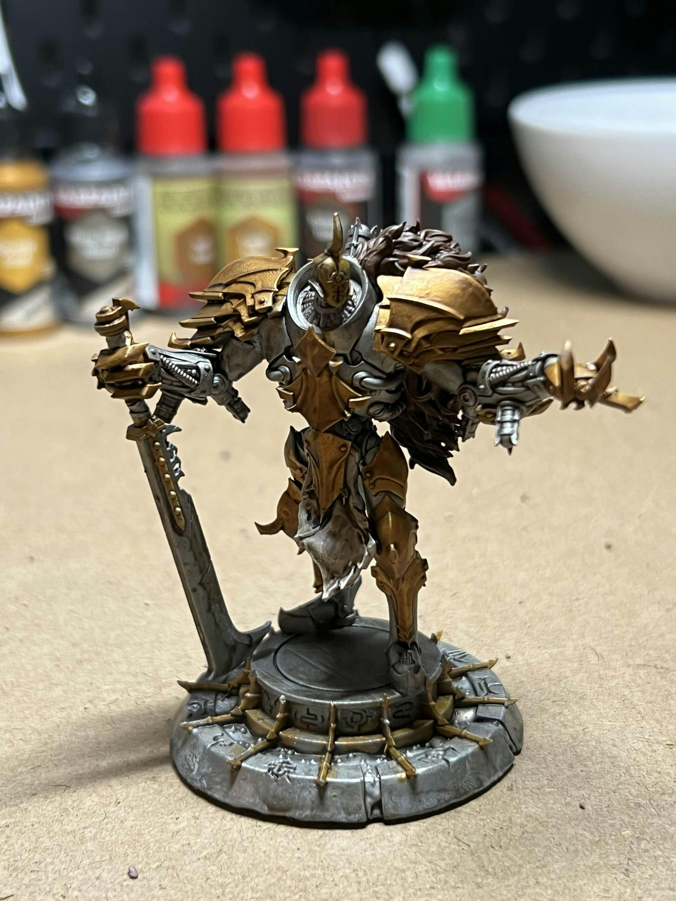 For miniature painting enthusiasts, the Clockwork Soldier offers a canvas that blends the martial with the mechanical. The gleaming plate armor invites techniques that highlight its polished surface and the contrast between the worn edges of battle and the untouched brilliance of well-maintained metal. The large sword provides an opportunity to experiment with effects that suggest both its weight and sharpness, from the gleam of its edge to the shadows that define its form. The challenge lies in conveying the soldier's dual nature: a creation of both magic and mechanics, a being of gears and enchantments clothed in the trappings of war.