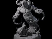 Introducing the Raging Fire Djinni, a breathtaking miniature that captures the essence of a mythical fire elemental. This figure is meticulously crafted, showcasing a muscular and menacing creature that seems to emerge from a swirling vortex of flames. Its well-defined musculature and dynamic pose exude power and strength, while the horn-like features extending from its head add an extra layer of intimidation. The djinni's lower body seamlessly transitions into a torrent of fire, embodying the raw, elemental fury it represents.