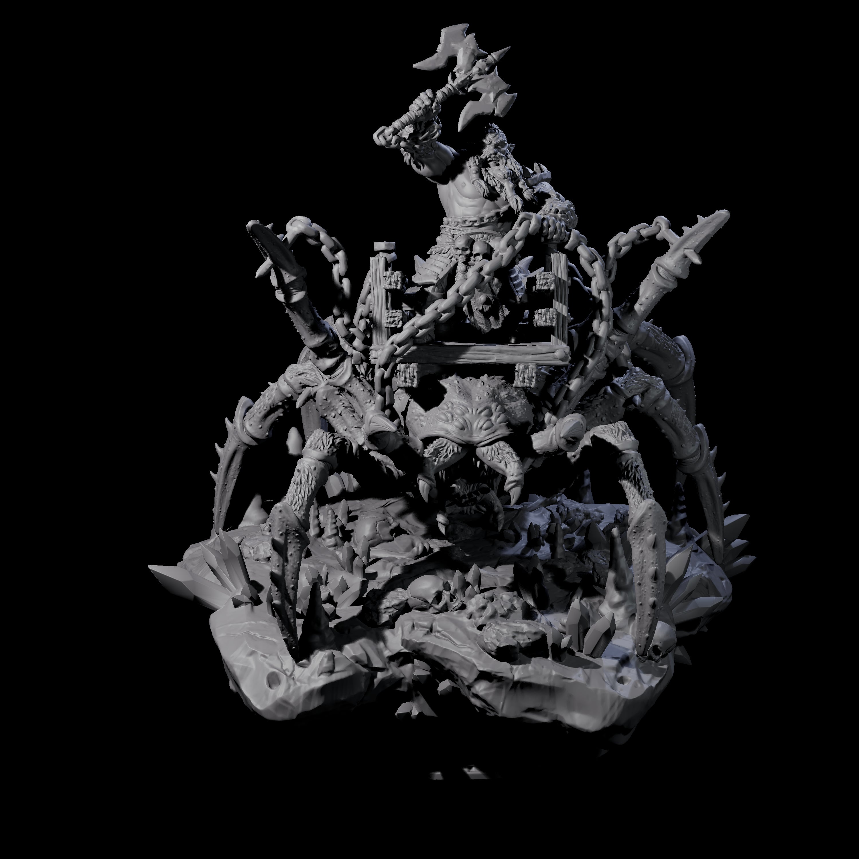 With breathtaking details—from the intricate patterns on his armor to the massive, clawed limbs of his eight-legged steed—this unpainted miniature is a true centerpiece for any collection. Will your adventurers fight alongside this spider-riding champion, or will they become prey to his venomous wrath?