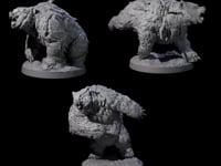 Unleash the untamed power of nature with our Three Battle Hardened Dire Bears miniature set. Each bear figure is a testament to wild resilience and ferocity, perfect for adding a formidable presence to your tabletop game. Model A commands attention, standing tall on its hind legs, its muscular build and scarred fur narrating tales of countless battles. Its snarling expression and open mouth evoke a sense of raw, intimidating dominance that will captivate any player or onlooker.