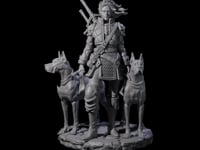 The Mastiff Master is not just a figure; she tells a story of mastery and companionship. Armed with two elegantly crossed swords on her back, she stands ready for any challenge that comes her way. Accompanying her are two large, loyal mastiffs, each standing alert and attentive. This trio embodies the spirit of adventure and teamwork, making it an ideal centerpiece for storytelling and role-playing scenarios in your Dungeons and Dragons or Pathfinder campaigns.