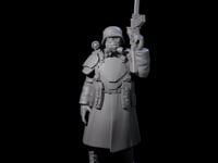 Clad in a flowing greatcoat and protective gear, this masked commando grips his rifle with practiced ease. His obscured features and tactical vest speak to covert operations in hostile territory. The figure's imposing stance and specialized equipment mark him as an elite operative ready for any mission.