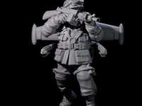 This battle-hardened skytrooper hovers in mid-flight, his twin jetpack engines propelling him through hostile airspace. Gripping a compact submachine gun with practiced precision, he embodies the perfect fusion of cutting-edge aviation technology and infantry combat prowess. His tactical gear and focused stance reveal a soldier trained for three-dimensional warfare, ready to strike from above with lethal efficiency.