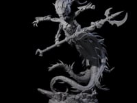 Immerse yourself in the depths of the ocean with the Attacking Deepsea Lamia A miniature. This exquisite figure captures the fierce beauty of a deepsea lamia in a dynamic attacking pose. With the upper body of a humanoid and a long, serpentine tail, this miniature boasts intricate details that bring its aquatic nature to life. The finely crafted headgear mimics the delicate tendrils of coral or seaweed, perfectly complementing the lamia's elegant and lethal appearance. The menacing dual-bladed polearm she wields indicates her role as a formidable warrior, ready to strike with precision and power.