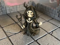 This medium-scale mini features an ominous dark wizard personality, perfect for representing a player character, a rival sorcerer, or a powerful NPC in your game. Designed to look great straight out of the box, it is multicolour PLA FDM printed in monochrome, so there’s no painting required. Just place it on the table and let the spells fly.
