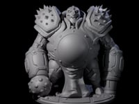 Massive spiked gauntlets mark this iron golem as a devastating close-quarters combatant. Its hulking frame bears the scars and dents of countless battles, while arcane sigils glow beneath layers of enchanted metal plating. Standing in a menacing crouch, this construct radiates patient malevolence, waiting for intruders to cross its threshold.