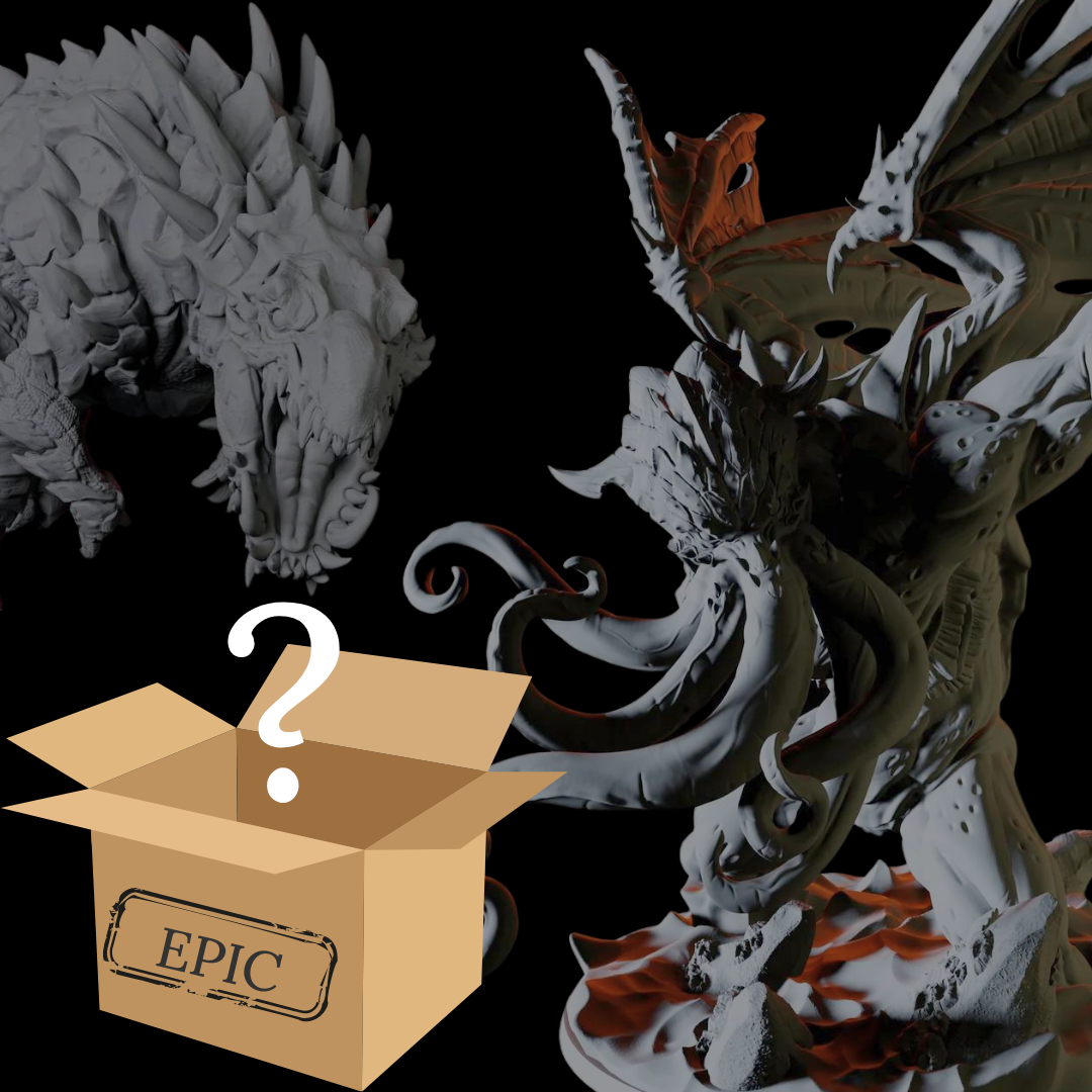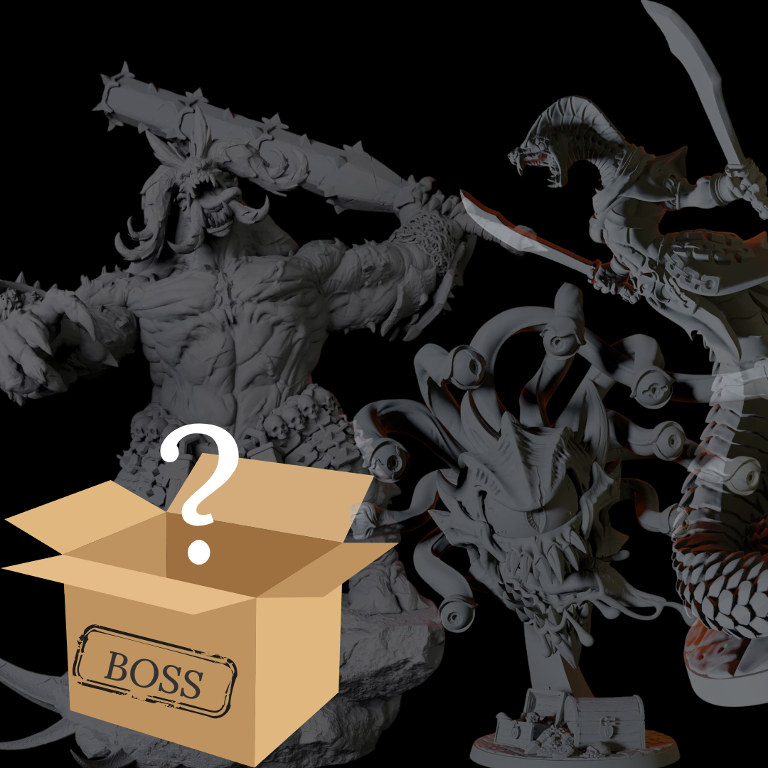 Our most epic and imposing 3 and 4" boss minis with three 1" minions by their side. You won't be disappointed by the selection of jaw-dropping surprises this box has in store for you.