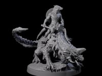 Unleash the dynamic energy of battle with our Charging Kobold on Drake miniature, a stunning piece that captures the essence of swift, aggressive action. This intricately crafted figure features a fierce-looking kobold with scaled skin, poised mid-charge on the back of a powerful drake. The kobold's determined expression, sword in hand, and minimal armor all convey its preference for speed and agility, while the drake's muscular build and menacing eyes add an extra layer of intensity to the scene.