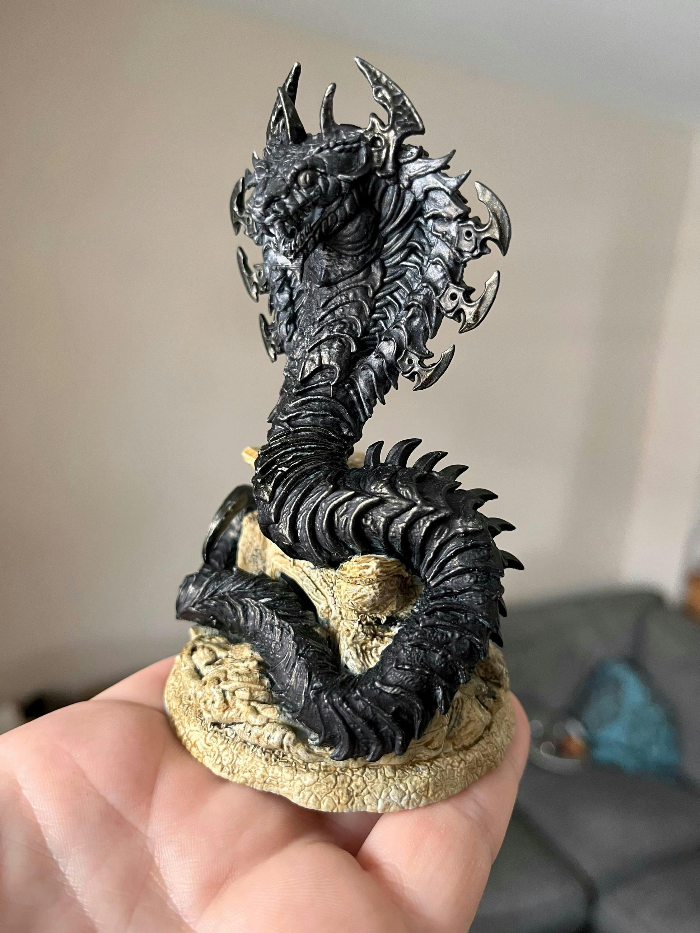 For miniature painting enthusiasts, the Giant Snake offers a canvas filled with opportunities for creativity and expression. The scales of the snake provide an excellent opportunity to explore various painting techniques, from dry brushing to create a textured effect to using washes that enhance the depth of each scale. The ornate hood invites a play of colors, allowing for the incorporation of vibrant patterns that signify the snake's venomous nature or its mystical origins. The rock and the ground around it can be painted to match the environment of your campaign, whether it's a dense jungle, a desert oasis, or the ruins of an ancient temple.