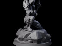 Kneeling atop ancient stone ruins, this determined investigator clutches both lantern and pistol as she uncovers cosmic horrors. Her practical gear and resolute pose capture the essence of scholarly courage facing the unknown. Perfect for any campaign where knowledge comes at a terrible price and sanity hangs by a thread.
