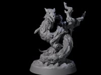 Unveil the mystique of the forest with the Creeping Evil Woodland Spirit, a sinister yet captivating miniature that embodies the untamed spirit of nature. This intricately designed figure exudes an aura of malevolence, with its serpentine form artistically entwined with gnarled branches and roots. The creature's elongated and twisted shape blends the features of both beast and plant, creating an otherworldly presence that is as enigmatic as it is imposing. Its wolf-like head, adorned with sharp, angular features and an open maw, captures a perpetual snarl, evoking a sense of danger and intrigue.