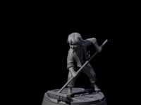 This determined youth grips his weapon with surprising confidence, standing firm despite his tender years. His practical clothing and ready stance suggest countless hours spent learning the ropes aboard ship. Whether serving as cabin boy on a pirate vessel or junior crew member on a merchant trader, he's prepared to fight for his shipmates when adventure calls.