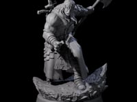 This detailed humanoid miniature captures raw combat readiness with its dual-wielding capability - a mighty axe at the ready and sword secured on the back. The figure's long hair flows with movement, complementing the aggressive pose. Layered attire combines practical cloth and light armor, enhanced by utility elements like belt pouches and combat gear. The round base features realistic rocky terrain, providing stable display and gaming presence. Perfect for players seeking a commanding warrior miniature or painters wanting to capture intense battlefield character.