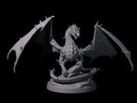 The Spikey Crystal Dragon miniature is a breathtaking representation of power and majesty, adorned with sharp, crystalline spikes that line its impressive frame. These spikes, prominently situated along the dragon's back, tail, and head, give it a fierce and regal appearance. Its scales are crafted with meticulous attention to detail, resembling the mesmerizing texture of crystal formations, which enhances its otherworldly and mystical presence on the tabletop. The dragon stands poised in a commanding stance, its expansive wings unfurled with dramatic flair, ready to soar or establish its dominance over any realm.