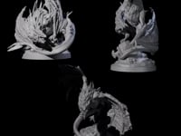 Crafted with meticulous attention to detail, the 'Three Hunched Young Black Dragons' miniature set captures the fearsome essence of these iconic creatures. Each dragon is sculpted in a unique pose, showcasing their menacing scales and prominent, tattered wings that speak of countless battles and ancient power. The long, curved horns and intense, glaring eyes further emphasize their draconic lineage, while the open mouths reveal rows of razor-sharp teeth poised for action. Perfectly balanced on multi-sized bases, these miniatures exude a sense of movement and alertness, ready to spring into a dynamic scene on your tabletop.