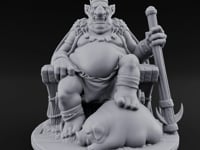 This goblin king radiates cruel authority from his macabre throne of bones and skulls. Crowned and armed with a brutal staff, his corpulent frame speaks to years of ruling through intimidation and excess. His savage grin and commanding posture make him perfect as a boss encounter or warband leader.