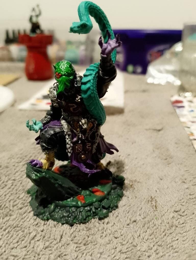 For miniature painting enthusiasts, the Yuan-ti Snake Charmer presents an engaging challenge. The armor offers a chance to explore metallic textures and aged patinas, suggesting a history of ceremonial use and battle scars. The snake itself invites experimentation with color, allowing for vibrant patterns that stand out against the more subdued tones of the armor. Painting the fangs in stark contrast to the scales can emphasize their deadly nature, and careful attention to the charmer's eyes can convey the hypnotic power inherent to the Yuan-ti.